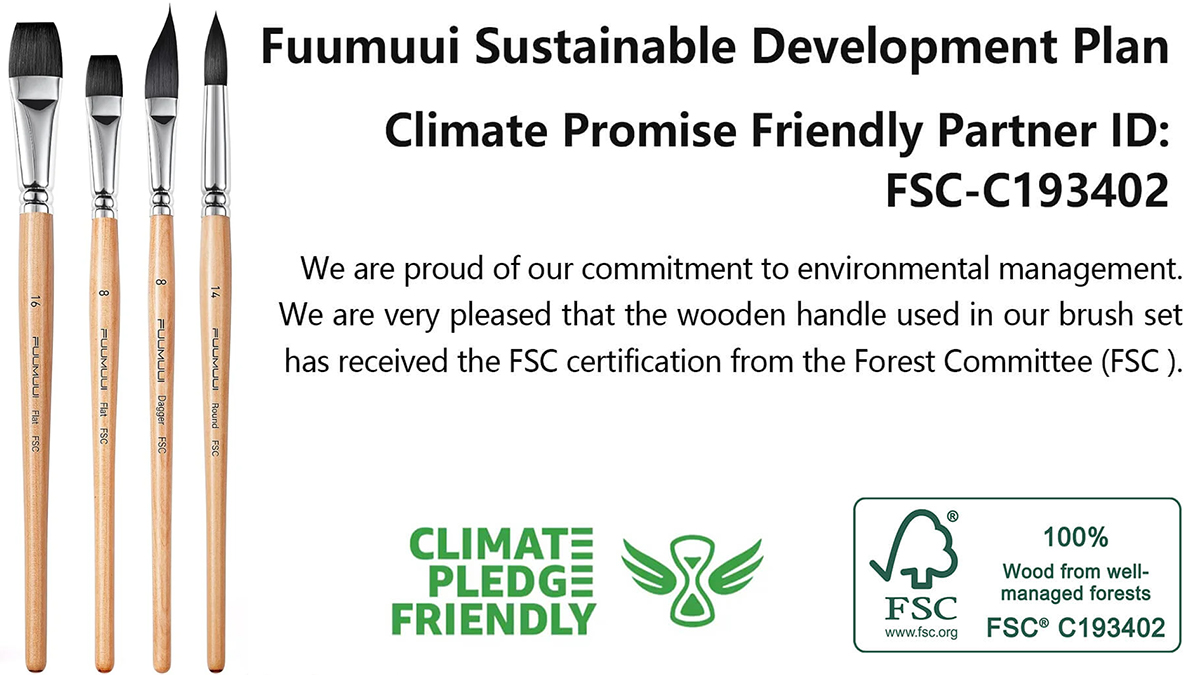"We believe that the beauty an artist creates on canvas should not come at the cost of the world’s natural beauty," says the founder of Fuumuui. "Switching to FSC-certified wood is our way of ensuring that our professional watercolor brushes are as kind to the earth as they are responsive to the hand."